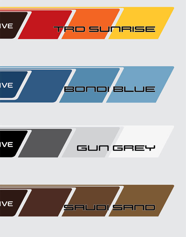 A beautiful body stripe kit available in a wide array of colours for your 1994-1997 80-SERIES TOYOTA LAND CRUISER to give it a completely unique look that it deserves and you're going to love, this stripe kit has been created to fit perfectly and look amazing on your vehicle. Printed on premium vinyl, proven to withstand the harsh outdoors.
